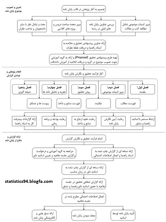 روند انجام یک پایان نامه از ابتدا تا انتها رو در چارت خلاصه زیر می تونید مشاهده کنید.